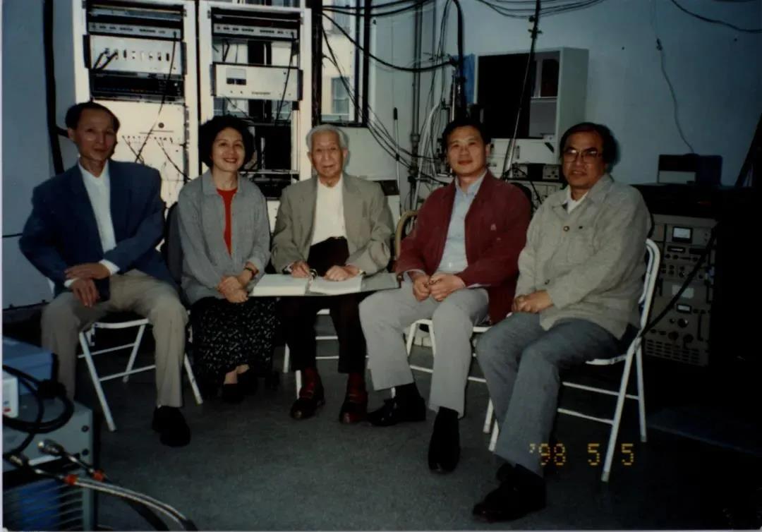 汤定元与褚君浩等科研人员在实验室留影(左三汤定元、右二褚君浩)(来源:上海科协)