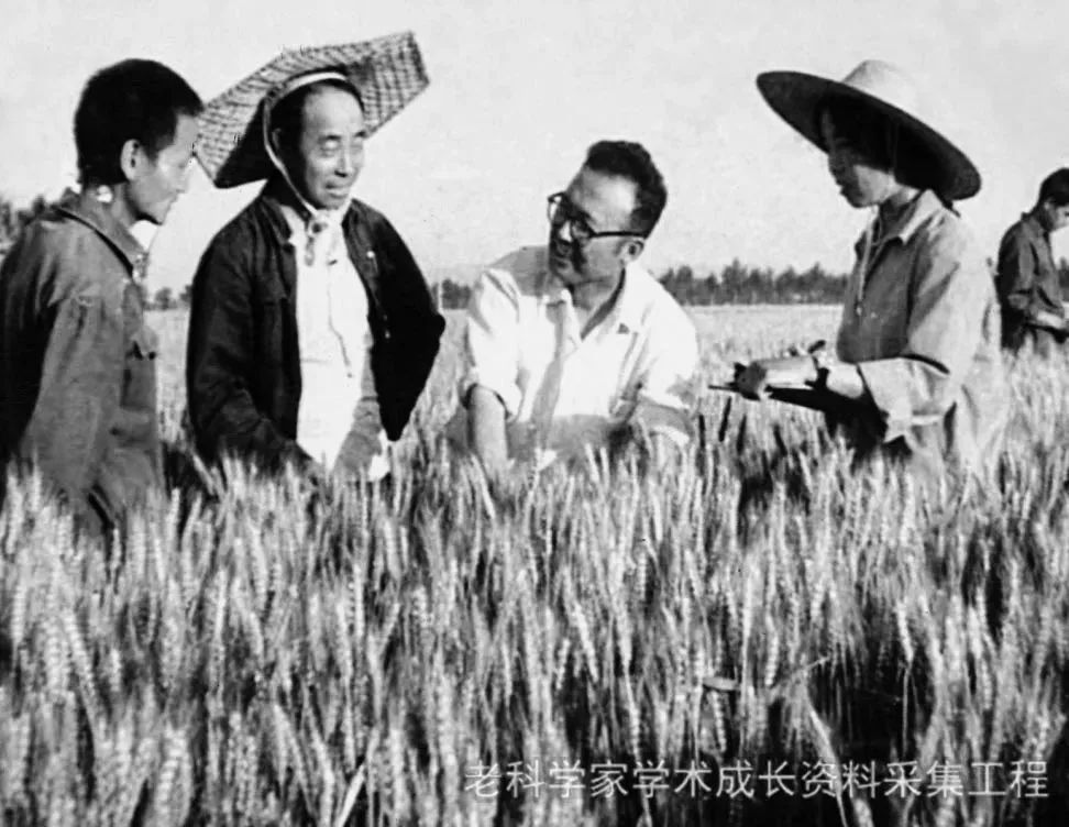 1966年5月,余松烈(右二)在肥城汶阳镇砖西村麦田考察