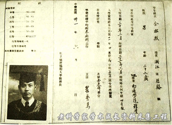 1941年春,余松烈和几个同学一起离开上海,通过敌伪封锁线,到位于福建邵武的私立协和大学农学院读书。从那时起,余松烈和郑广华、邵霖生都是异乡客地,离家千里。他们住在一起,吃在一起,彼此相互帮助,逐步成为患难之交。