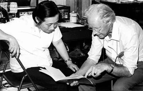①尹文英与Tuxen讨论。