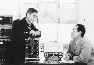 1956年,郑哲敏(右)与科学家郭永怀亲切交流。