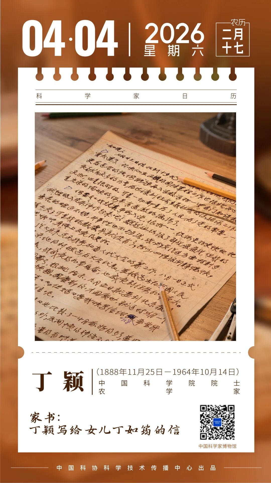 《科学家日历》特别推出「纸页丹心」全新栏目,邀您一同走进中国科学家博物馆,触摸珍贵手稿、品读墨韵笔迹,在字里行间回望峥嵘岁月,感悟一代代中国科学家矢志报国的赤诚初心。
