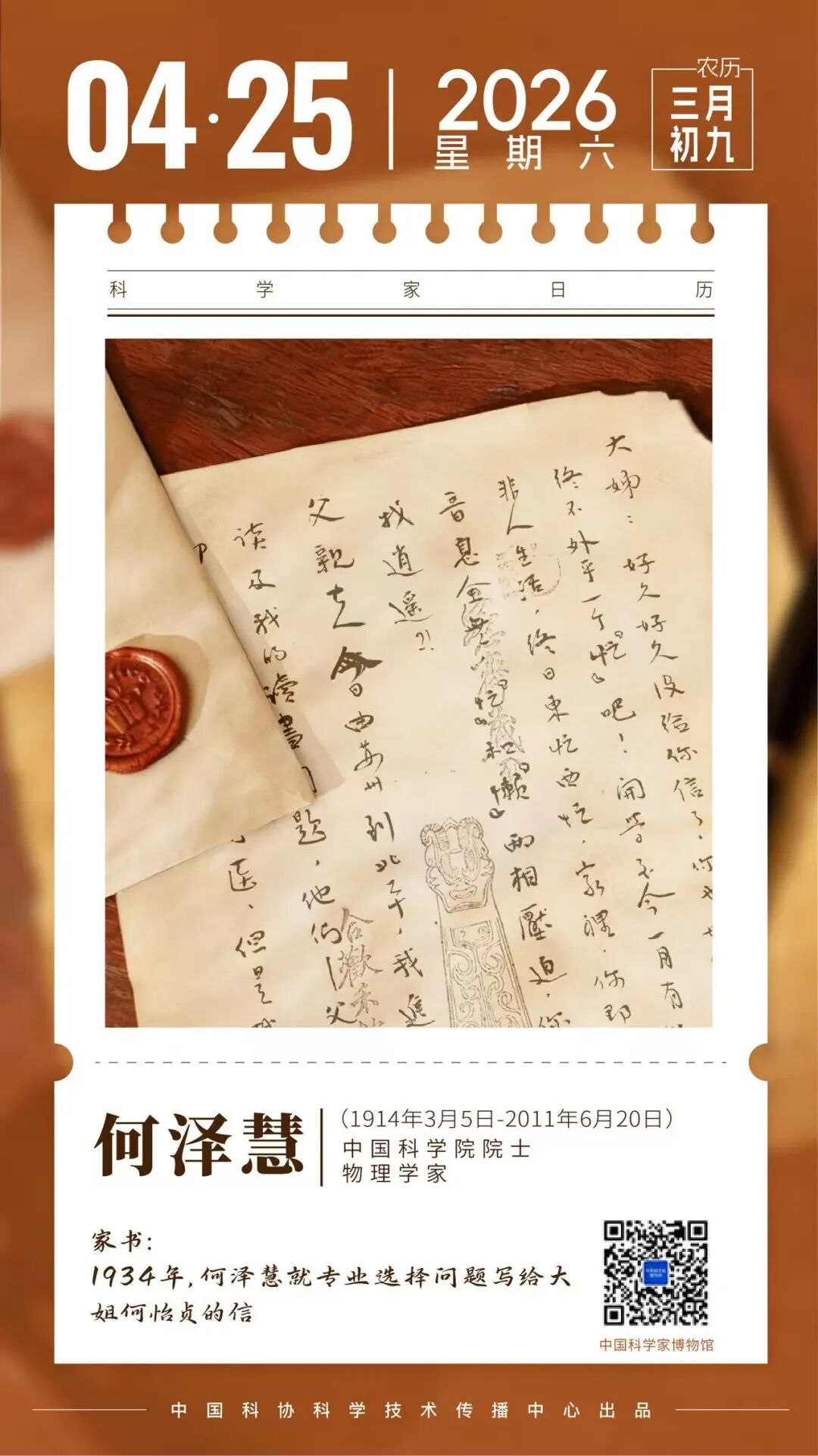 11月18日,在彭士禄同志诞辰百年之际,为弘扬科学家精神,纪念彭士禄同志的突出贡献,中国科协、中核集团联合主办的“中国核动力事业的拓荒牛——纪念彭士禄院士诞辰百年”主题展在中国科学家博物馆开展。中国科协党组成员、书记处书记王进展,中核集团党组副书记、董事刘建平出席开展仪式并致辞。彭士禄,中国工程院院士,是中国第一代核潜艇首任总设计师,中国核动力事业的开拓者与奠基人。信件