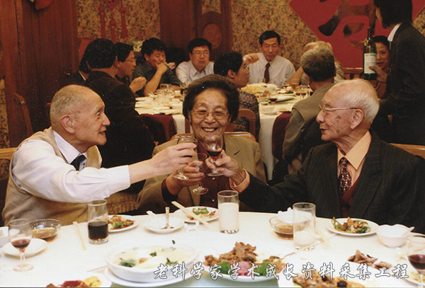 2004年,在饭店为杨遵仪庆生,从右至左:杨遵仪、黄鹂、陈冠荣。