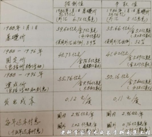 彭土禄关于秦山二期工程筹资的数据计算档案