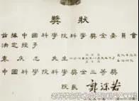 1957年,中国科学院科学奖金委员会授予袁庆志、沈荣显等人中国科学院科学奖金三等奖