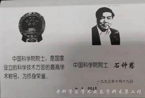1993年10月石钟慈被评为中科院院士,证书编号:0015