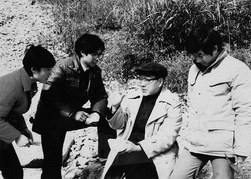 ①1988年,王德滋(右二)在安徽省歙县伏川进行野外教学与讨论。