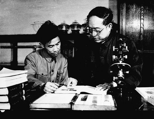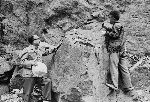 ②王德滋(右一)与周金城研究桐庐次火山花岗岩。