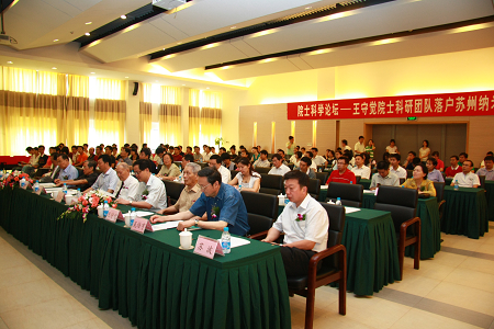 2015年 6月15日上午,中国科学院院士刘盛纲、王守觉、陈国良、吴培亨和中国工程院院士李同保、许居衍齐集苏州工业园区,在中国科学院苏州纳米技术与纳米仿生研究所共同出席了院士科学论坛暨王守觉院士科研团队落户苏州纳米所工作启动仪式。作为我国高维形象几何仿生信息学理论的创始人,王守觉院士表示,希望借实验室落户苏州的机会,将这一理论在苏州继续延续下去。苏州市政府秘书长陶孙贤,市科技局局长周旭东,苏州市科协主席明亮,园区管委会副主任苏波出席论坛。杨辉所长出席论坛并主持了工作启动仪式。