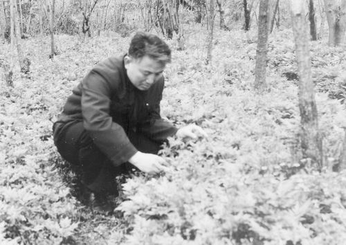 1984年,重上福宝山时,徐锦堂观察林下生长的黄连