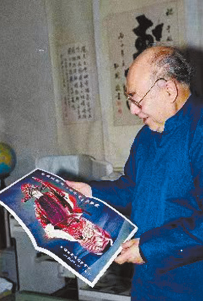 于敏在欣赏京剧海报。