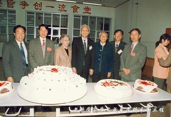 1995年10月15日,校庆期间祝贺叶培大教授80寿辰(老院长秦华礼向其贺寿,并与叶教授合影),左四叶培大。