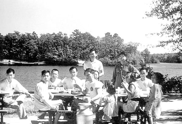 1952年夏,留美中国学生在美国Medford湖畔商讨回国大计。(科学报图片)