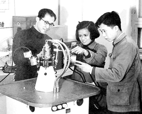 1961年,张兴钤在北京钢铁学院指导金属物理教研组老师进行金属分析。