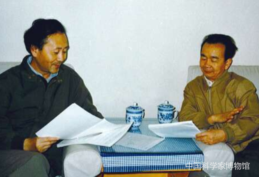 张景中(右)与杨路(左)讨论学术问题