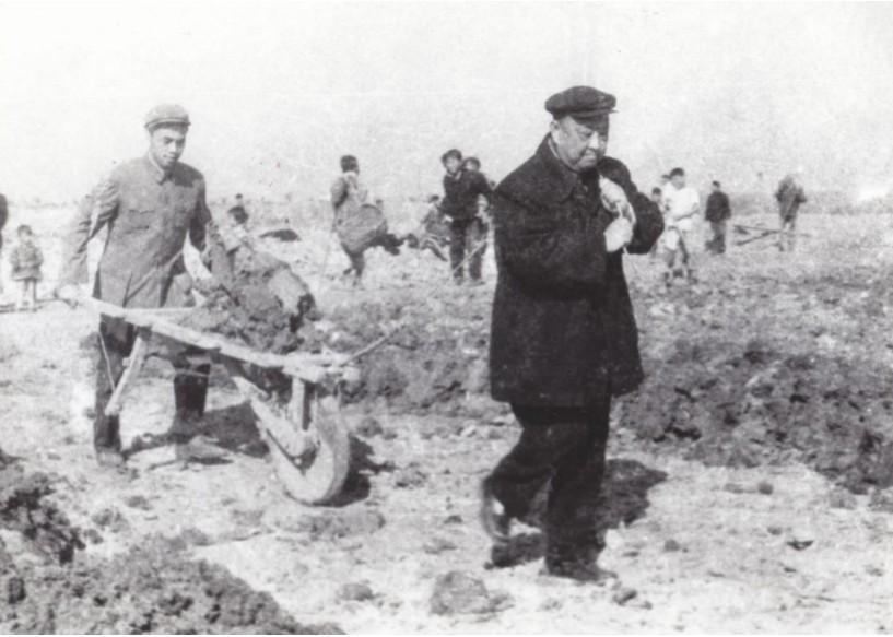 1965年,熊毅在封丘盛水源村打第一口治理盐碱机井场景